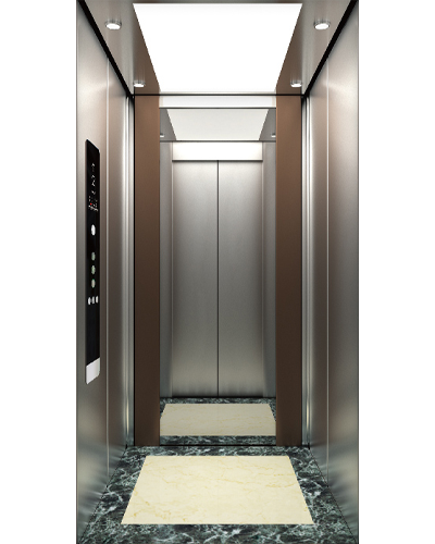 轿壁:镜面不锈钢与木饰面板组合,两侧发纹不锈钢
