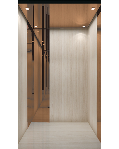 轿壁:玫瑰金镜面不锈钢与木饰面板组合