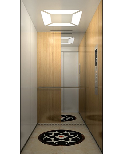 轿壁:镜面不锈钢与木饰面板组合,左侧彩纹钢板,右侧木饰面板