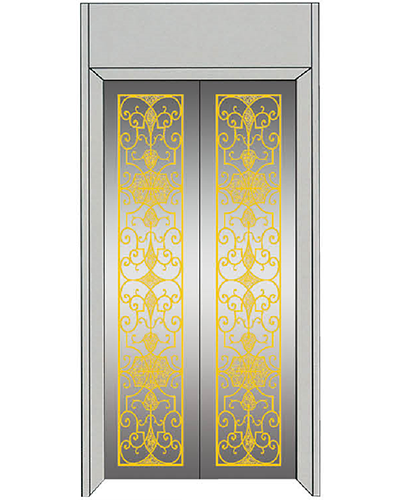 厅门:镜面蚀刻不锈钢、凹部金色